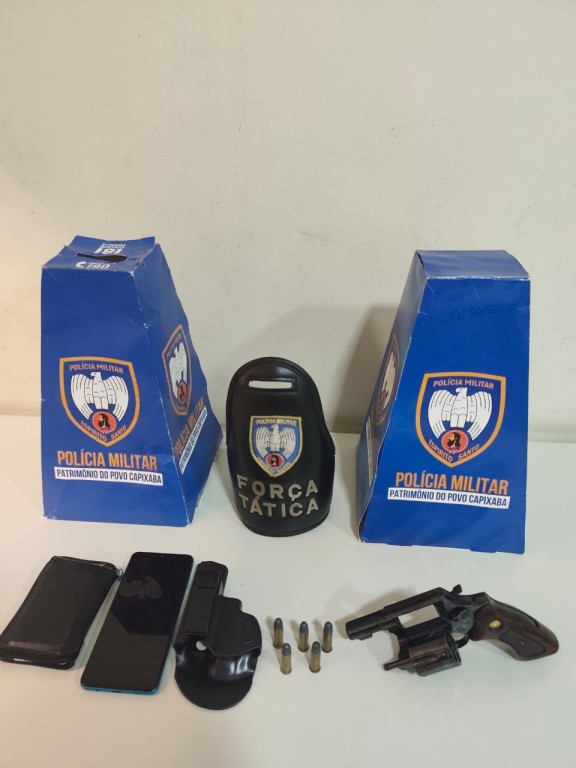 Durante patrulhamento na Avenida Padre José de Anchieta, por volta das 18h, um homem foi abordado e encontrado portando um revólver calibre .38 com numeração raspada. Ele foi detido e encaminhado à delegacia.