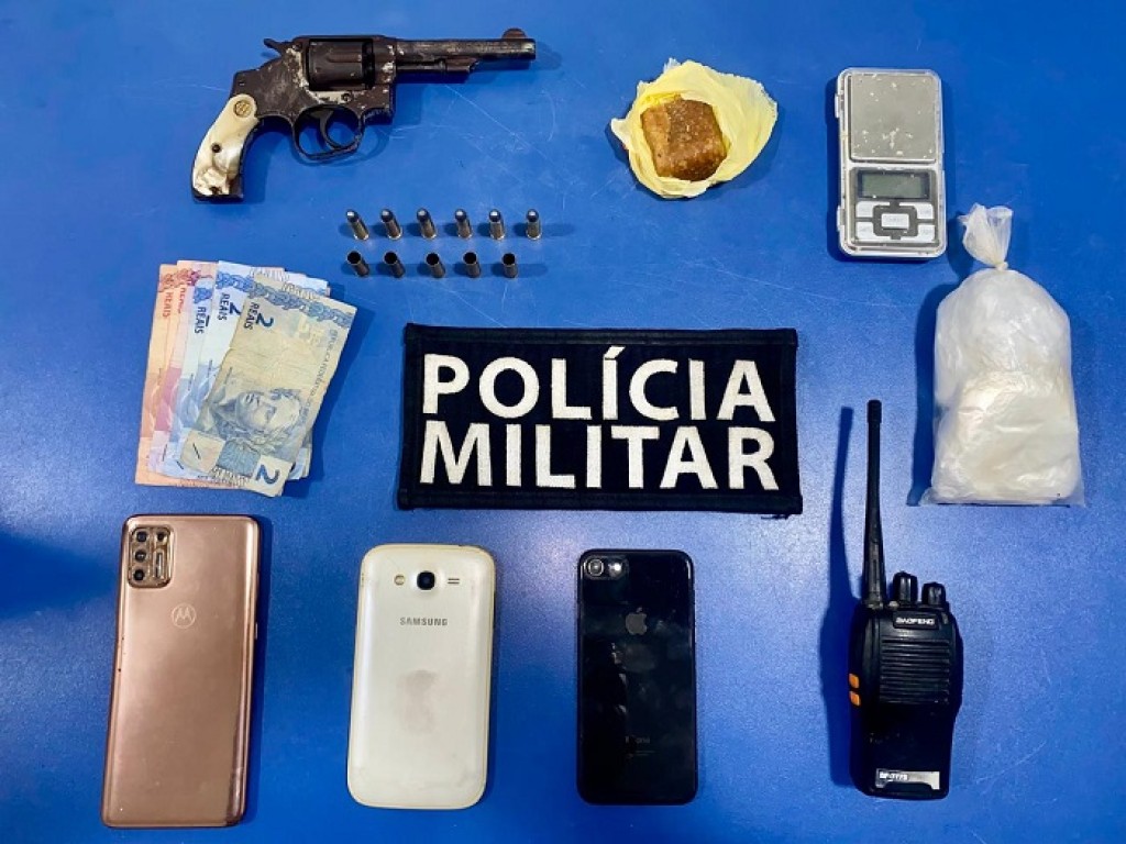 Diante da denúncia, as equipes realizaram abordagens no local, resultando na apreensão de um revólver calibre .32 com 11 munições, uma pistola calibre 9mm com 31 munições, dois carregadores de pistola, um pedaço de crack, R$ 47 em espécie, um rádio comunicador e uma balança de precisão.