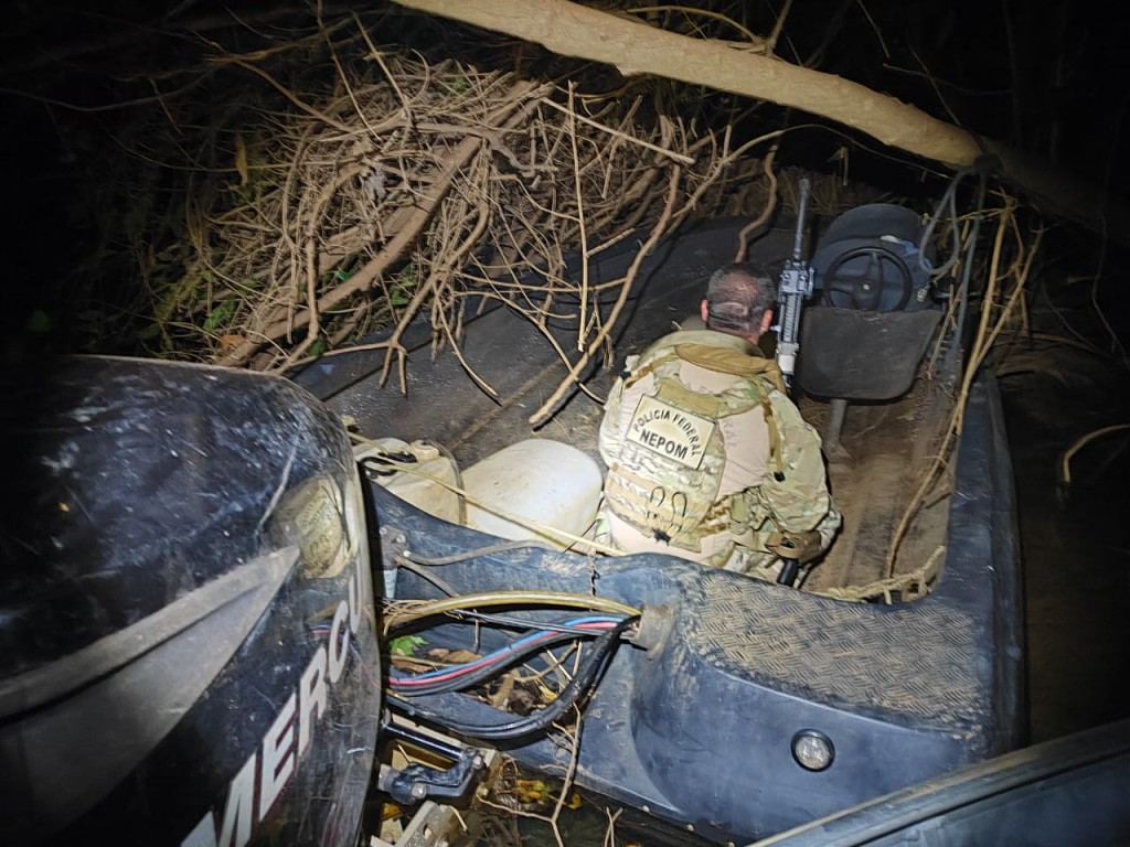 Guaíra/PR. Na madrugada desta sexta-feira (30/8), policiais federais e policiais militares do BPFRON/PMPR, em uma operação conjunta, realizavam patrulhamento embarcado no Rio Paraná, quando encontraram