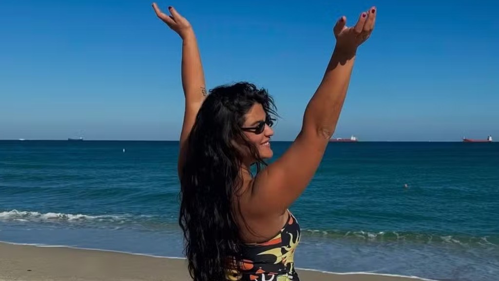 Giulia Costa aproveitou o dia ensolarado neste sábado para ir à praia e compartilhou um pouco do momento com seguidores nas redes sociais. “Meu lugar feliz”,