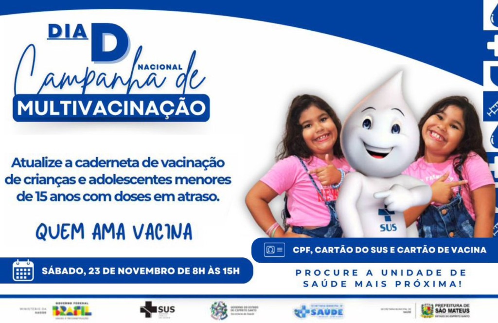 Hoje, 23 de novembro, é o Dia D da Campanha de Multivacinação. Em São Mateus a campanha tem como objetivo atualizar a caderneta de vacinação