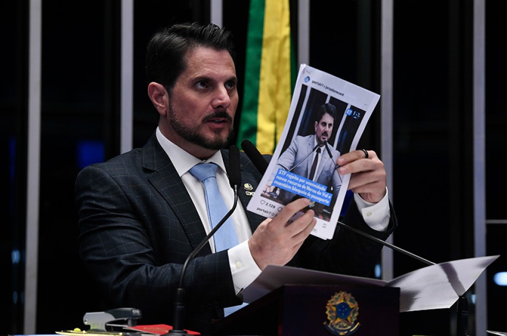 O senador Marcos do Val (Podemos-ES) criticou nesta terça-feira (11) a decisão do Supremo Tribunal Federal (STF) de rejeitar, por unanimidade, o recurso contra o