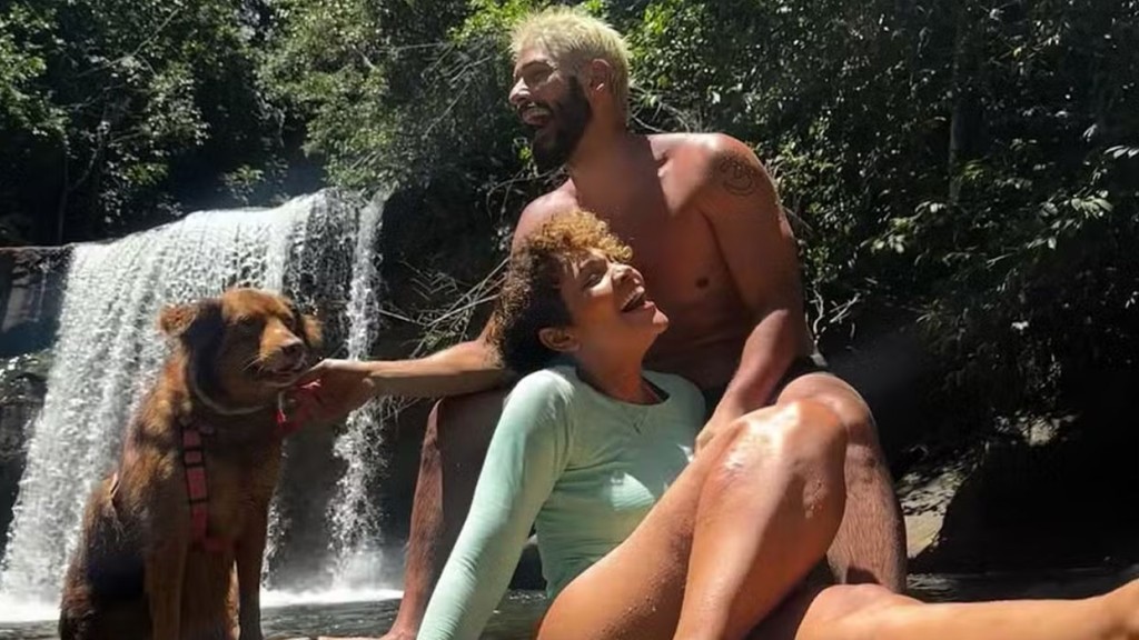 Bárbara Reis aproveitou uma pausa nas gravações de Três Graças, novela em que vive Lena, para viajar com o marido, Raphael Najan, para um destino