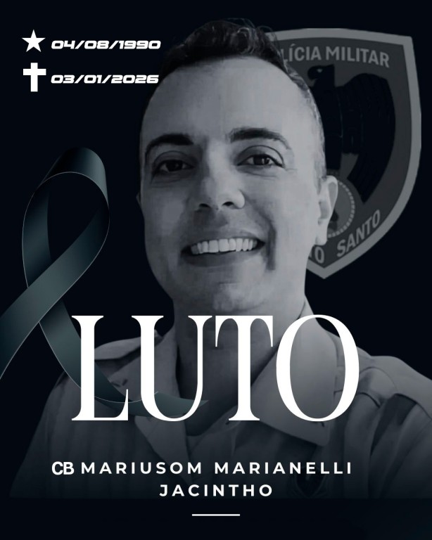 É com imenso pesar que a Polícia Militar do Espírito Santo informa o falecimento do cabo Mariusom Marianelli Jacintho. O militar faleceu neste sábado (03).
