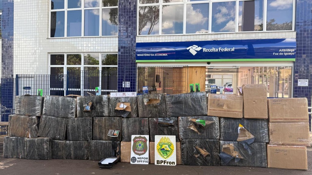 PF, PM/PR e Receita Federal apreendem celulares em estacionamento de Foz do Iguaçu