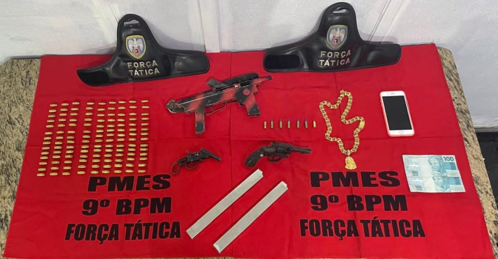 Na noite deste sábado (18), durante patrulhamento tático, a Força Tática do 9° Batalhão recebeu informações sobre a realização de um baile funk no bairro Fé e Raça, em Cachoeiro de Itapemirim. As equipes deslocaram-se até o endereço informado e, após diligências, realizaram a apreensão de armas de fogo, munições de diversos calibres, dinheiro e outros materiais ilícitos.