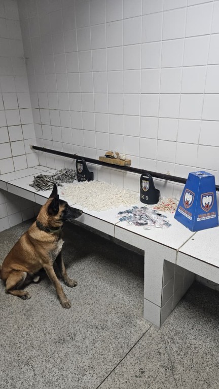 No sábado (06), no bairro Jardim Limoeiro, as equipes de Força Tática, com o emprego do cão policial Apollo, localizaram uma sacola escondida no alto de uma árvore contendo 1.010g de maconha em duas unidades, 466 unidades de maconha (1.200g), 219 unidades de haxixe (160g), uma unidade de cocaína (105g), 2.070 unidades de cocaína (3.290g) e 715 unidades de crack (225g).