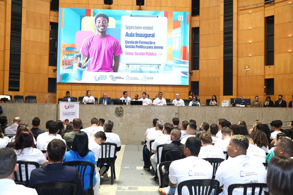 Com um Plenário Dirceu Cardoso lotado de jovens, foi realizada a aula inaugural da Escola de Formação Política para os Jovens, projeto desenvolvido pela Assembleia Legislativa (Ales). O lançamento contou com a presença de deputados estaduais, prefeitos, vereadores, autoridades, coordenadores, professores do projeto e, claro, de muitos inscritos na escola.