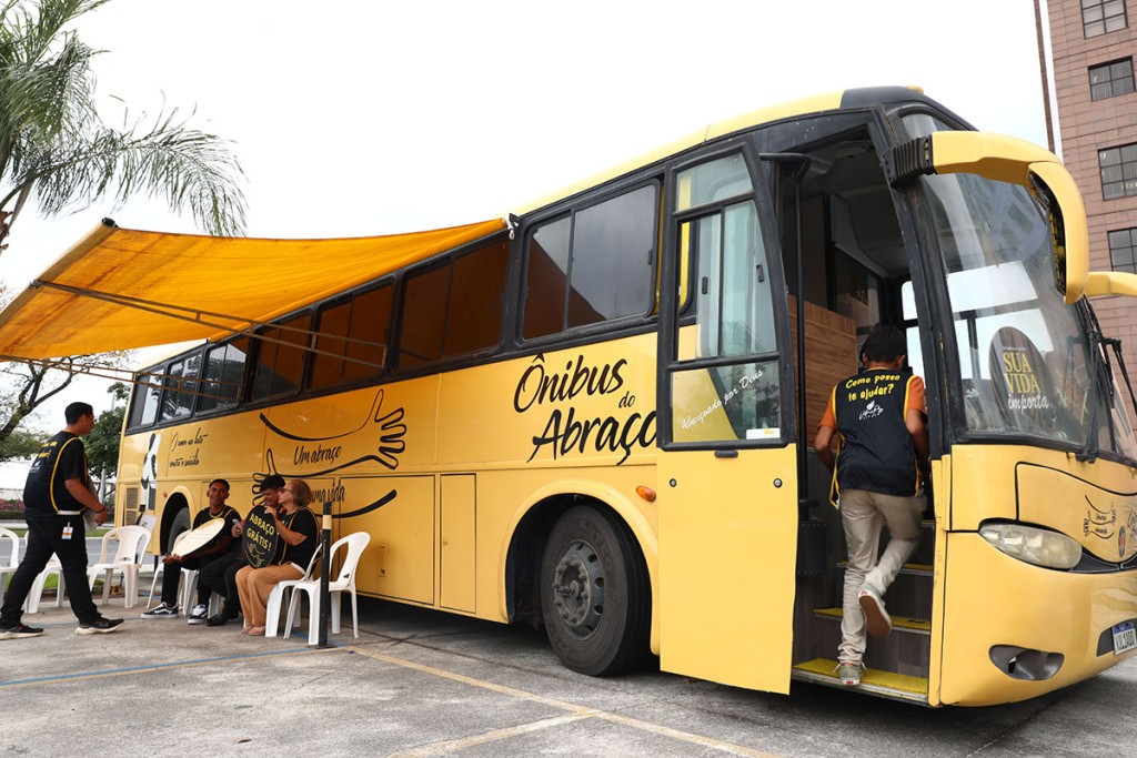 Depois da palestra os estudantes também tiveram a oportunidade de conhecer o Ônibus do Abraço: um veículo que foi adaptado com cabines individuais, no qual psicólogos e voluntários da Rede Abraço podem conversar com pessoas que estejam passando por momentos de dificuldade.