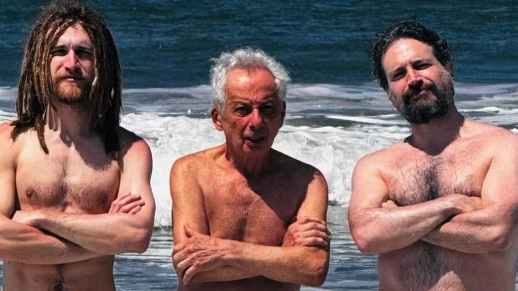 “Três gerações ao sol, trabalhados no filtro (solar)”, brincou o ator, que aparece sem camiseta, assim como o pai e o filho, ao ar livre. A atriz Maeve Jinkings, ficou impressionada ao ver o filho único do amigo ator.