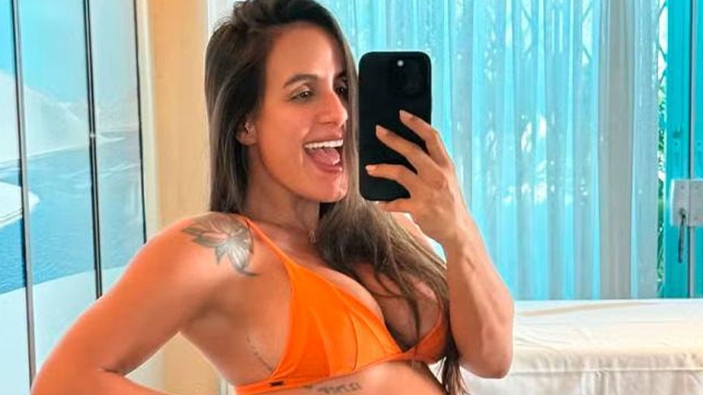 “Olha o tamanho dessa barriga! Essa semana tá punk… Acordei e falei: ‘Meu Deus!’”, comentou, ela, emocionada. A gravidez foi anunciada em março, e o chá revelação aconteceu em abril, com transmissão ao vivo.