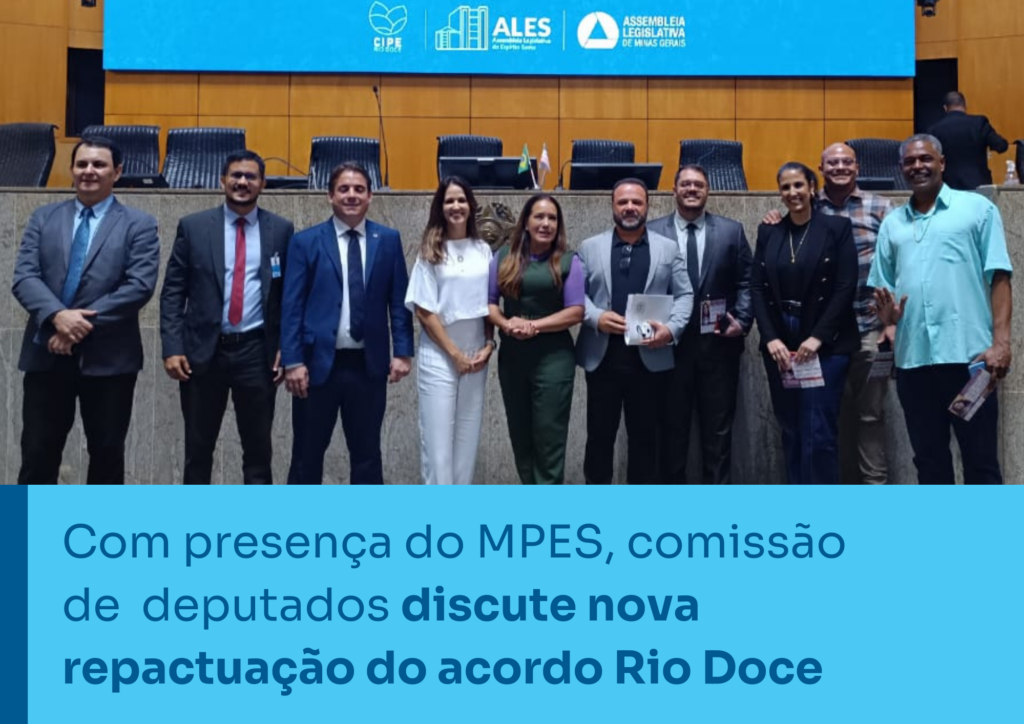 O Ministério Público do Estado do Espírito Santo (MPES) esteve presente na sessão plenária promovida pela Comissão Interestadual Parlamentar de Estudos para o Desenvolvimento Sustentável da Bacia Hidrográfica do Rio Doce (Cipe Rio Doce), na Assembleia Legislativa. O MPES foi representado pela Coordenadora do Grupo de Trabalho de Recuperação do Rio Doce (GTRD), Promotora de Justiça Elaine Costa de Lima.