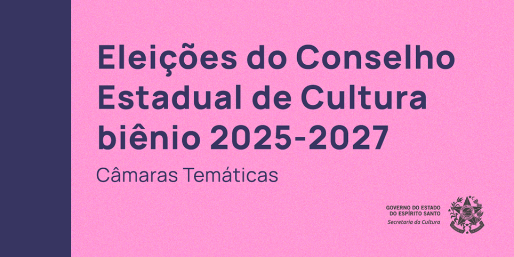 O Conselho Estadual de Cultura do Estado do Espírito Santo (CEC) convoca as organizações de âmbito estadual, representativas das categorias artísticas e culturais, para a eleição, especificamente, de novos conselheiros das câmaras temáticas. O processo visa à escolha de um titular e dois suplentes para as câmaras de cada área cultural, que se dividem em: Câmara de Artes Cênicas, Câmara de Artes Musicais, Câmara de Artes Visuais, Câmara de Audiovisual, Câmara de Literatura e Biblioteca e Câmara de Bens Imateriais.