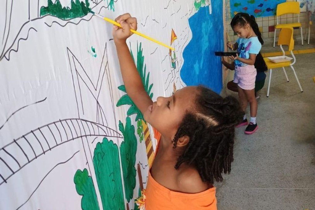 Um dos destaques do projeto é o mural coletivo que ilustra a diversidade e a riqueza natural e histórica da cidade. A pintura retrata paisagens como as praias serranas, a Igreja dos Reis Magos, o Parque da Cidade, a Ponte de Nova Almeida, a região de Queimado, além do morro do Mestre Álvaro. O desenho foi criado pela professora de arte da rede municipal, Camila Louzada Lordelo, e pintado com a participação das crianças dos turnos matutino e vespertino.
