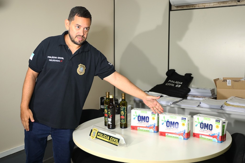 O titular da delegacia, Eduardo Passamani, explicou que a ação foi desencadeada após o colegiado da Ales ter recebido uma denúncia. “Um consumidor denunciou a compra de um sabão que teria qualidade inferior. Foi feita uma apuração, uma investigação preliminar e identificamos várias caixas sendo vendidas. É uma rede de farmácias aqui da Grande Vitória. Ela possui até unidades no interior, mas a princípio nós identificamos nas unidades da Grande Vitória”, afirmou o delegado.