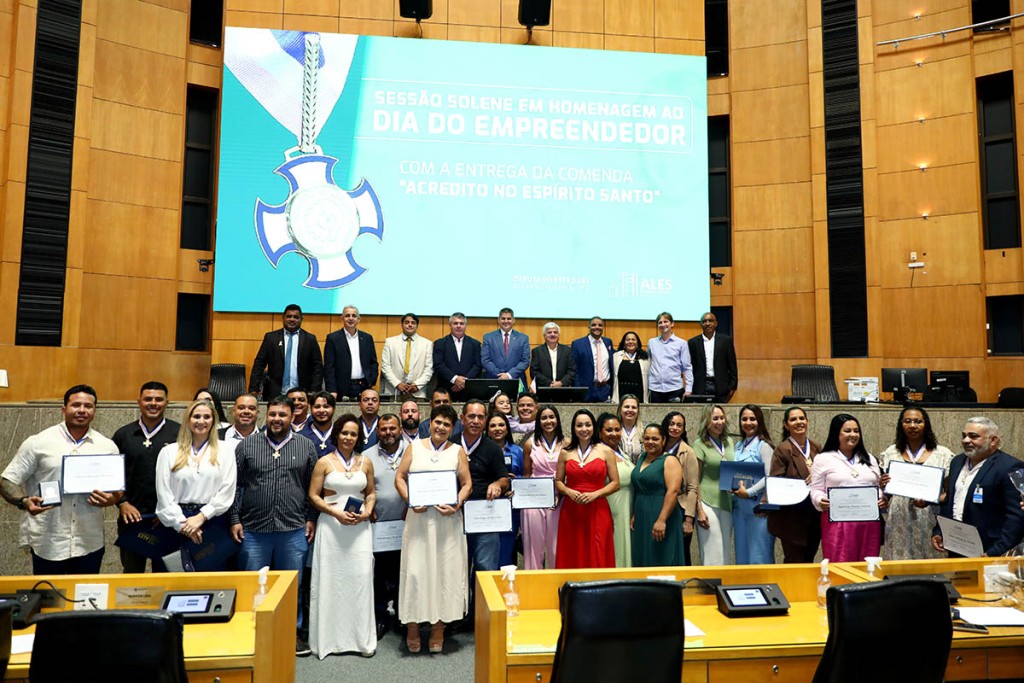 Ao todo, 31 empreendedores receberam a Comenda do Mérito Legislativo “Acredito no Espírito Santo”, destinada a empreendedores capixabas de diversas áreas. A comenda foi criada pela Resolução 4.452/2016. Empreendedor na área da gastronomia, Fernando Azevedo Becalli representou os homenageados na solenidade. “O crescimento do Estado passa pelo empreendedorismo. Cada empreendedor é uma semente de desenvolvimento que transforma realidades, impulsiona a economia e gera oportunidades para os outros. Empreender exige determinação, resiliência e criatividade. Essa homenagem é o reconhecimento daquele que, muitas vezes, está escondido em seu pequeno negócio, mas que faz uma diferença enorme para a vida do povo capixaba e para o Espírito Santo”, destacou Becalli.