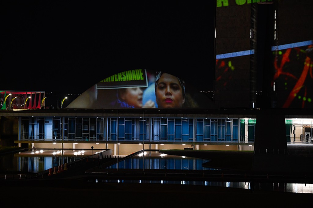 Nesse domingo (15), quem passou à noite pela Esplanada viu, projetados no Congresso Nacional, discursos e imagens de Ulysses Guimarães, de Abdias Nascimento e de outras personalidades, como a deputada Benedita da Silva (PT-RJ), a senadora Zenaide Maia (PSD-RN) e o senador Paulo Paim (PT-RS). As projeções fizeram parte da gravação do documentário Quando Elas Se Movimentam, da cineasta Susanna Lira, idealizado no âmbito dos 200 anos do Senado.