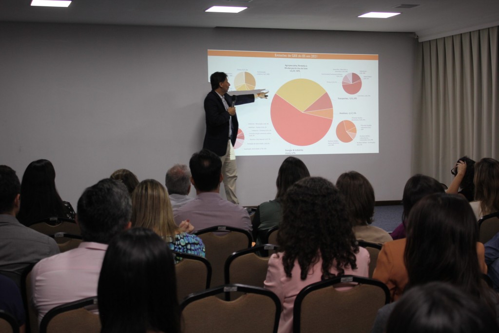 Desde 2023, o Bandes tem se aproximado de discussões sobre a redução das emissões de gases de efeito estufa (GEE) e a neutralização do carbono, posicionando-se como um agente transformador da economia capixaba. Durante o evento, o professor Neyval Costa Reis Junior detalhou o Plano de Descarbonização do Espírito Santo, que traça metas ambiciosas para reduzir as emissões em 27% até 2030 e alcançar a neutralidade até 2050. Ele ressaltou que o sucesso dessa transição depende de um esforço conjunto entre o setor público, privado e o desenvolvimento de políticas econômicas de incentivo.