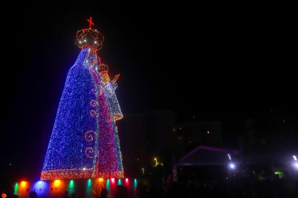 Festa da penha 2025: imagem de Nossa Senhora da Penha iluminada até o dia 29/04, na Serra