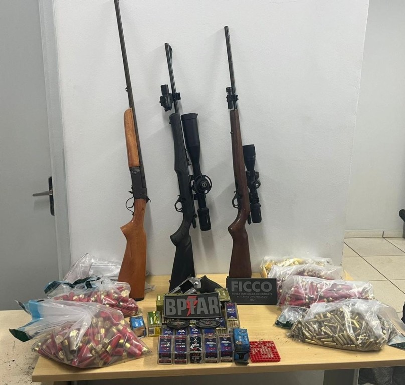 Um dos indivíduos era foragido da justiça e no decorrer da diligência foram apreendidos 1772 munições calibre .22; 87 munições calibre .16; 74 munições calibre .12; 88 munições calibre .20; 135 munições calibre .36; 130 munições calibre .380; 350 munições calibre .38; e 59 cartuchos diversos para recarga; um rifle calibre .17, marca CBC, modelo Bolt Action, nº LUH4517475; um rifle calibre .22, marca CBC, modelo Bolt Action, nº LUK 4555048; e uma espingarda calibre aparente .28, totalizando 2874 munições.