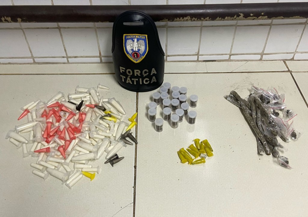 Ainda no domingo, no bairro Planalto Serrano, Bloco A, durante patrulhamento, dois indivíduos fugiram ao avistar a viatura, abandonando materiais entorpecentes no local. Foram apreendidas 23 buchas de maconha, 19 unidades de skank, 11 pinos de haxixe e 174 pinos de cocaína. Não houve detidos,