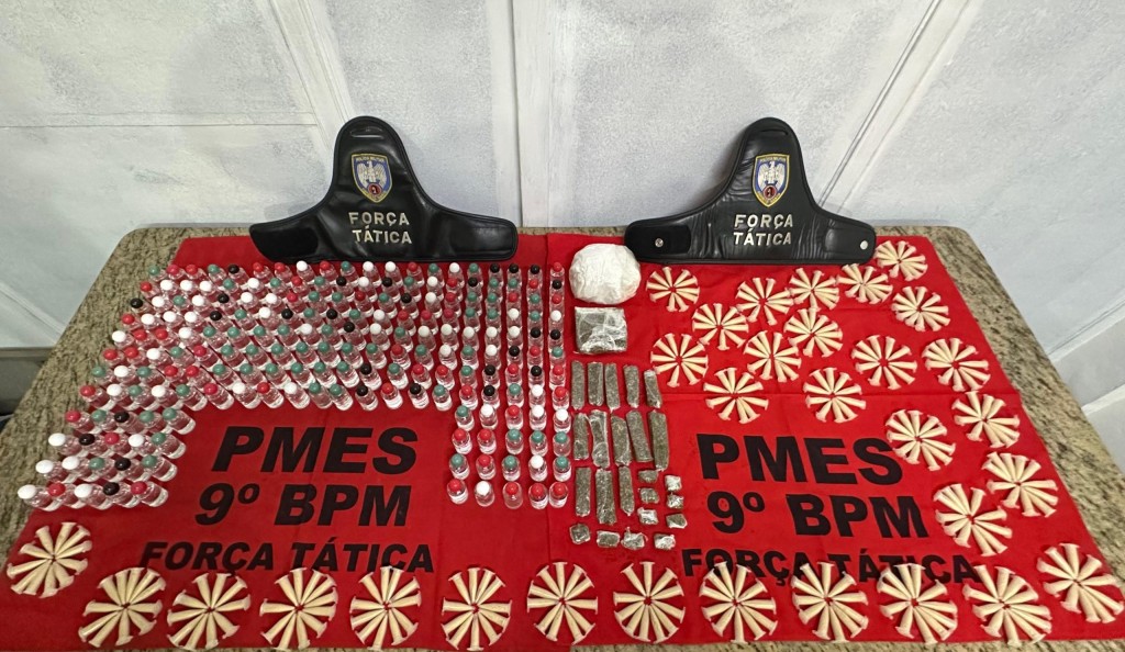 Militares da Força Tática do 9º Batalhão apreenderam drogas na localidade de Timbó, zona rural de Cachoeiro de Itapemirim. Um suspeito foi detido.