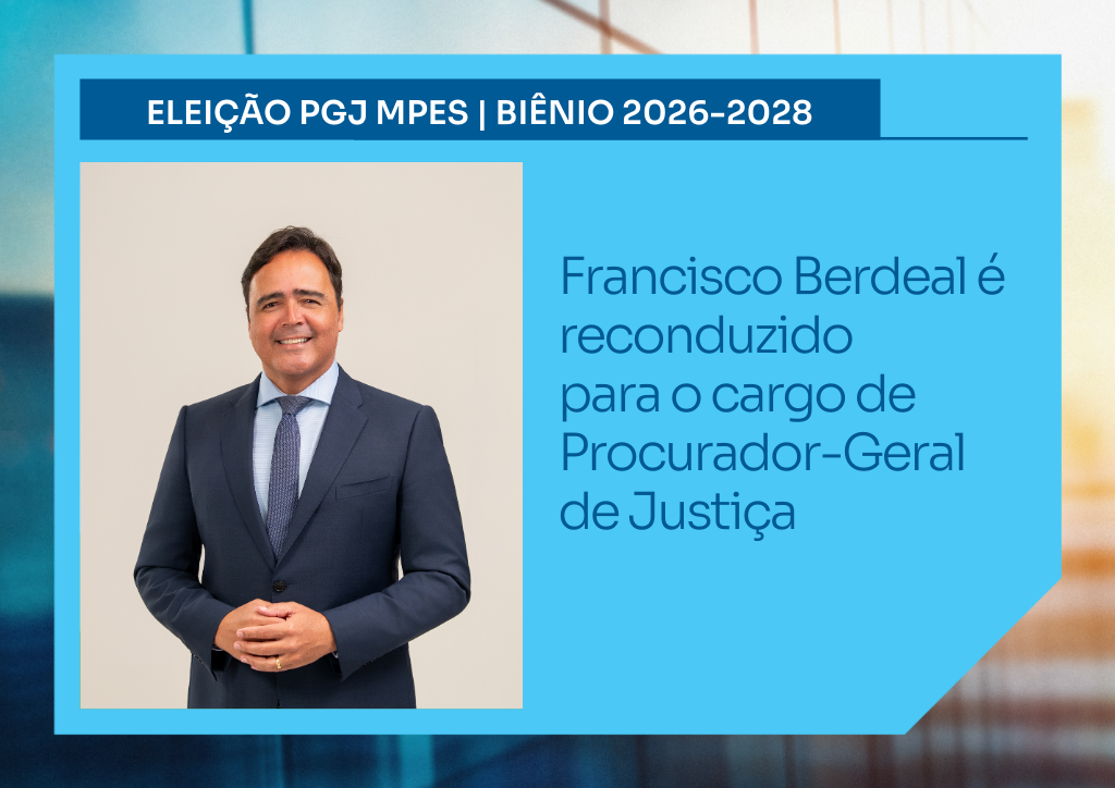 O atual Procurador-Geral de Justiça, Francisco Martínez Berdeal, foi escolhido nesta quarta-feira (11/03) pelo Governador do Estado, Renato Casagrande, para ser reconduzido ao cargo no biênio 2026-2028. A posse para a nova gestão será no dia 4 de maio, em solenidade às 17h.