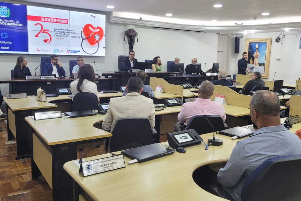 A comemoração pelos 25 anos do Instituto do Coração do Hospital Evangélico de Cachoeiro de Itapemirim foi tema da reunião da Frente Parlamentar em Defesa dos Hospitais Filantrópicos do Espírito Santo. O evento foi realizado na noite da última quinta-feira (25), na Câmara Municipal de Cachoeiro, reunindo autoridades estaduais e municipais, profissionais da saúde, representantes da sociedade civil e colaboradores da instituição.
