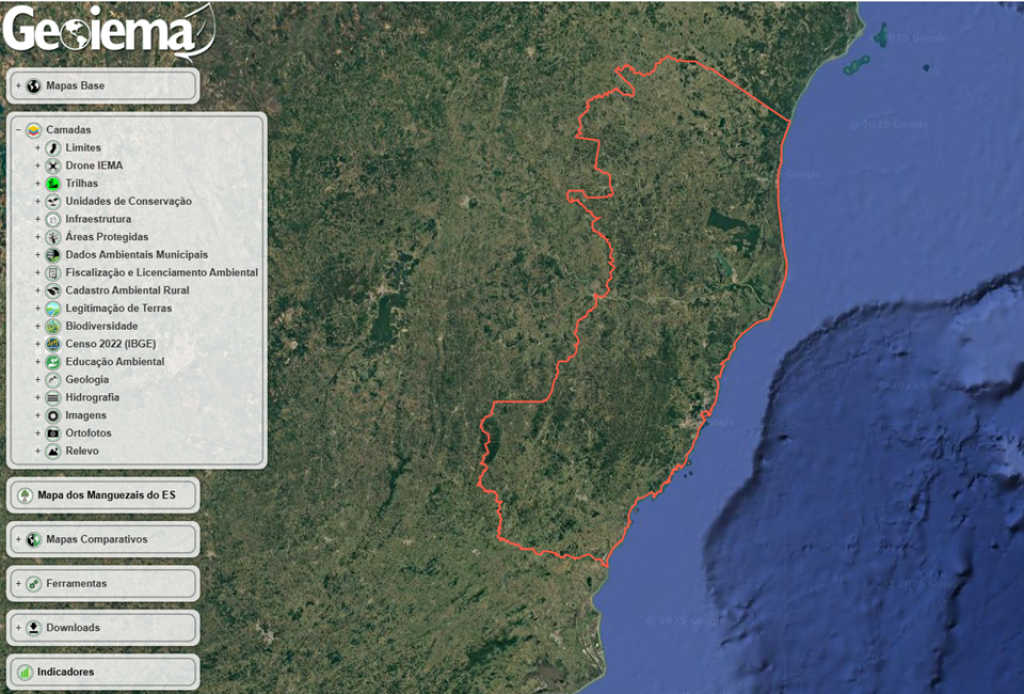 A plataforma está acessível no site do Iema, pelo link: http://geo.iema.es.gov.br/