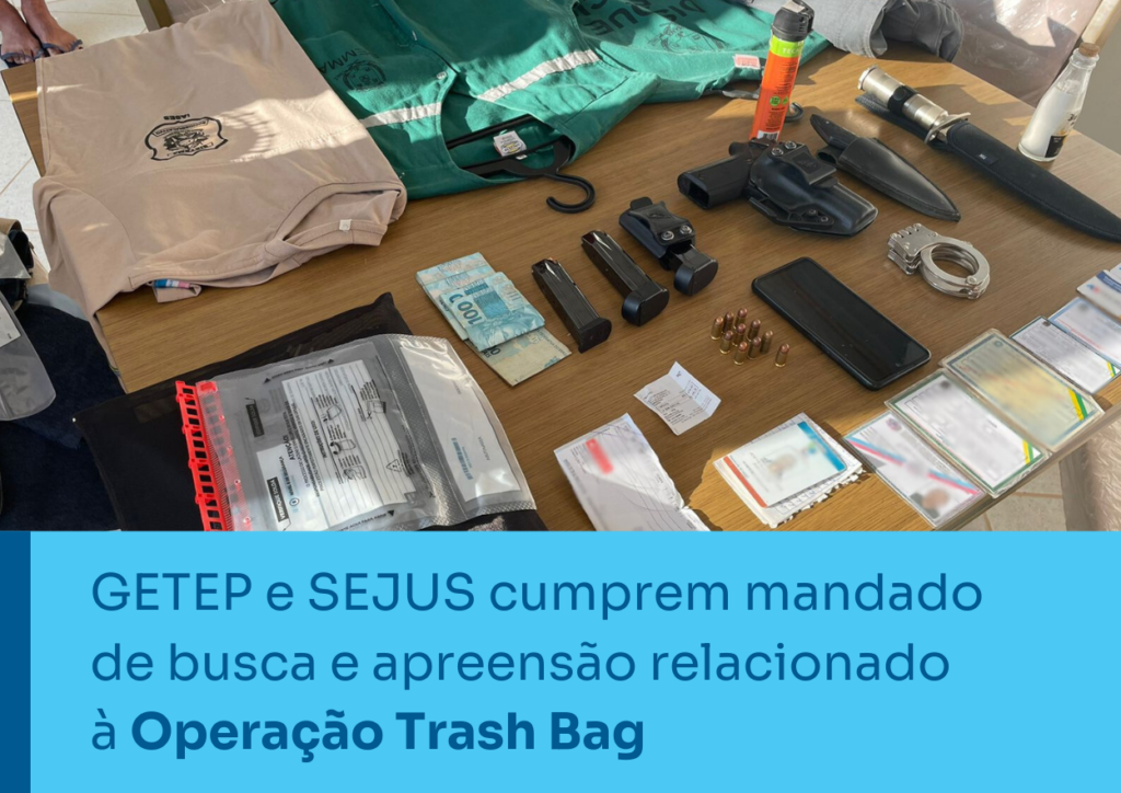 O Ministério Público do Estado do Espírito Santo (MPES), por meio do Grupo Especial de Trabalho em Execução Penal (GETEP), informa que foi cumprido na manhã desta terça-feira (24/09), no município de Viana, um mandado de busca e apreensão relacionado à Operação Trash Bag. A ação foi deflagrada pelo GETEP/MPES em julho e agosto (segunda fase) deste ano, para apurar a prática de crimes no sistema prisional do Estado. No cumprimento do mandado, realizado pelo GETEP e por Policiais Penais da Secretaria de Estado da Justiça (SEJUS), foram apreendidos dinheiro, cheques, documentos, armas, munições e materiais do sistema prisional capixaba. As investigações continuam e tramitam em segredo de Justiça. Por essa razão, no momento não é possível fornecer mais informações.