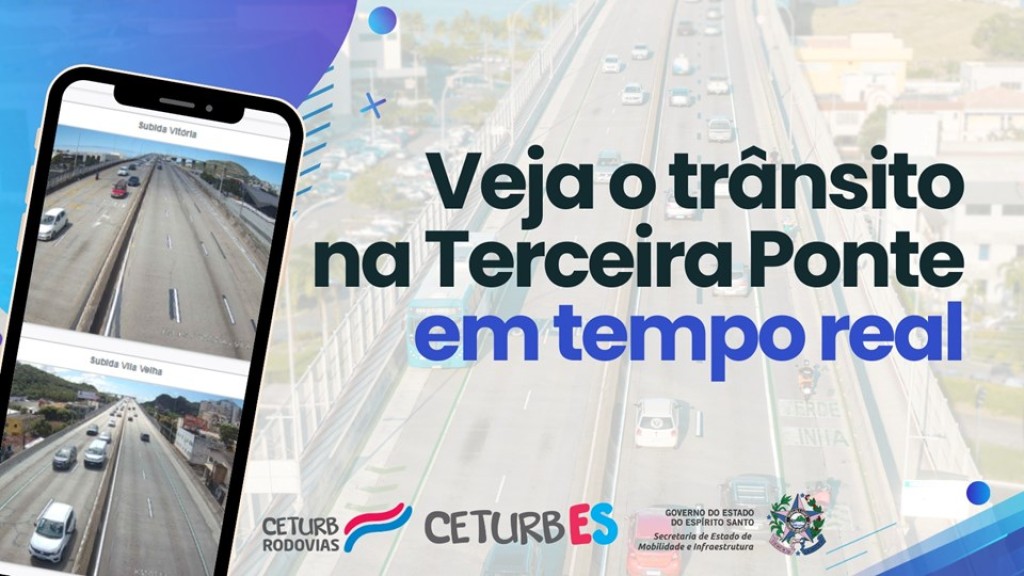 O Governo do Estado, por meio da Secretaria de Mobilidade e Infraestrutura (Semobi) e da Companhia Estadual de Transportes Coletivos de Passageiros do Estado do Espírito Santo (Ceturb/ES), passou a disponibilizar em tempo real as imagens dos acessos da Terceira Ponte. Agora, os motoristas que tiverem interesse poderão verificar o movimento na via e organizar melhor seus deslocamentos. O acesso pode ser feito pelo link: https://terceiraponte.ceturb.es.gov.br/ .