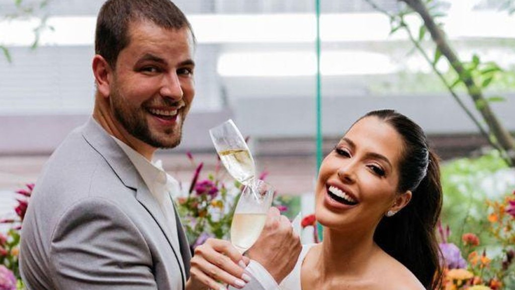 A médica e o influenciador oficializaram a união no civil em fevereiro, em um restaurante do Itaim Bibi, em São Paulo. Depois de ele entrar ao som do alviverde paulista, Gustavo se emocionou com a entrada da noiva, que foi levada até o altar pela mãe, Cleusania, ao som da música Eu Juro, da dupla Leandro & Leonardo.