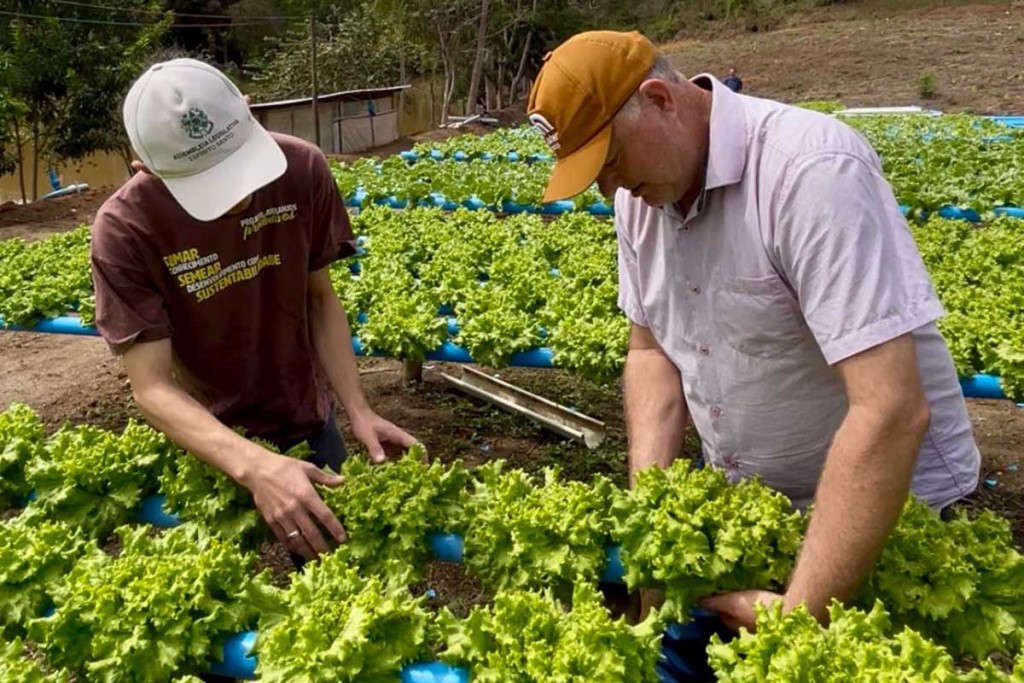 “Hoje a gente está principalmente começando com alface, mas a gente tem tomate, tem pepino, tem agrião, então a gente tem uma grande diversidade de produção nos nossos sistemas. É uma satisfação enorme, a gente vê que está dando certo e que funciona”, explicou Gean Carlos Borchat, técnico responsável pelos atendimentos em Vila Valério.