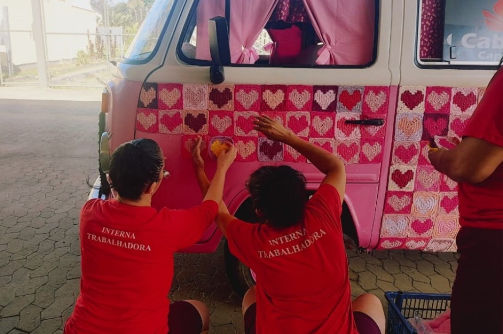 O artesanato produzido no sistema prisional do Espírito Santo será levado para a maior feira artesanal da América Latina, em São Paulo, no próximo mês. É que uma Kombi está sendo ornamentada com peças em crochê, confeccionadas por internas do Centro Prisional Feminino de Cariacica (CPFC), que atuam no Ateliê Mãos Livres.
