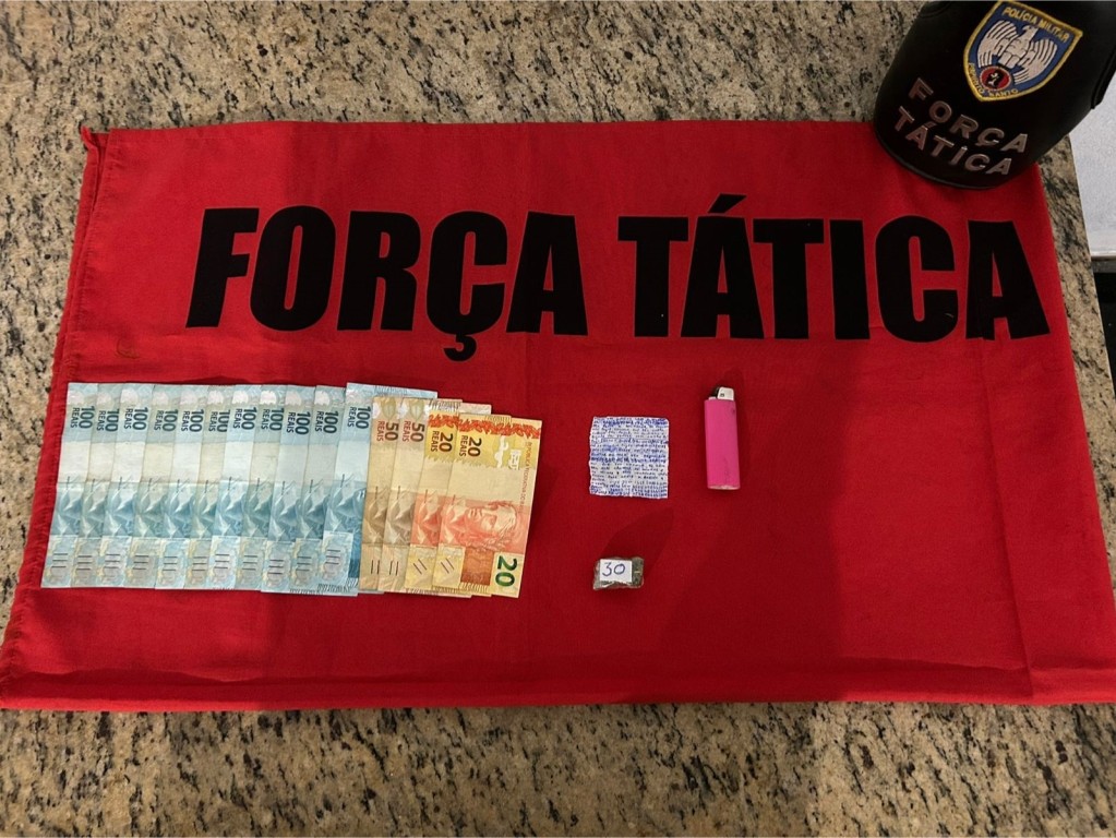 Com ele, foi encontrada uma porção de maconha, dinheiro, um celular e um caderno com anotações suspeitas. O homem foi entregue na delegacia de Cachoeiro de Itapemirim, juntamente com o material apreendido.