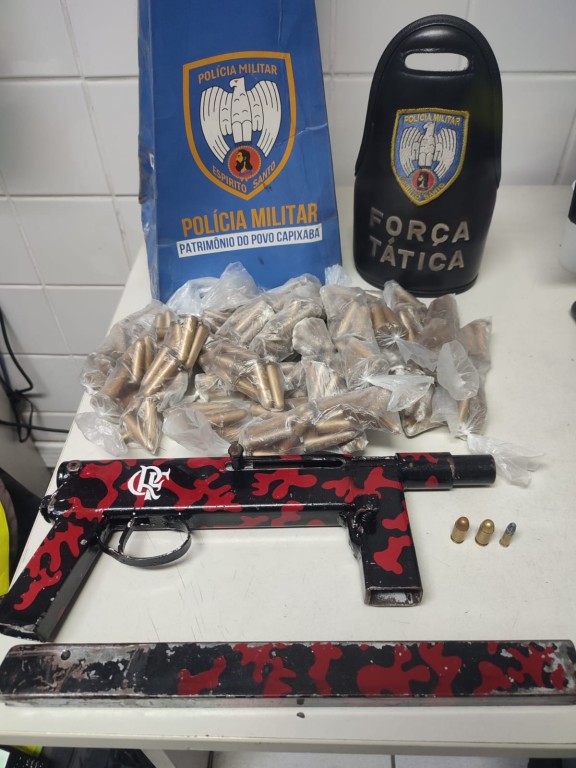 Durante a verificação de um Disque Denúncia, no bairro Taquara II, militares conseguiram deter um suspeito e apreender uma metralhadora calibre 380, munições, além de 268 pinos de cocaína.
