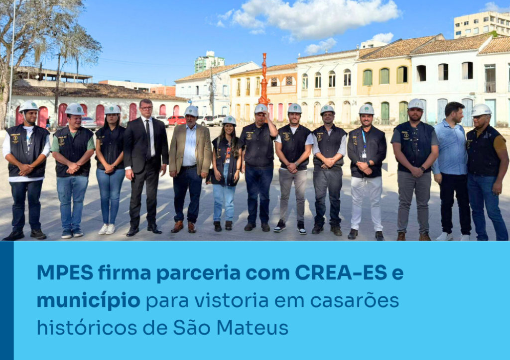 O Ministério Público do Estado do Espírito Santo (MPES), por meio da Promotoria de Justiça de São Mateus, formalizou na segunda-feira (07/07) o Termo de Cooperação Técnica com o Conselho Regional de Engenharia e Agronomia do Espírito Santo (CREA-ES) e a Prefeitura Municipal de São Mateus. O objetivo é realizar vistorias técnicas nos casarões do sítio histórico do município, que está em avançado estado de deterioração.