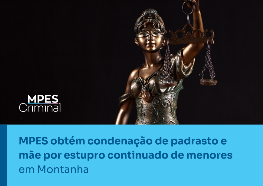 O Ministério Público do Estado do Espírito Santo (MPES) obteve a condenação de J.P.J.F. e I.B. pela prática dos crimes de estupro de vulnerável e estupro qualificado, cometidos, de forma continuada, contra duas menores na zona rural do município de Montanha/ES.