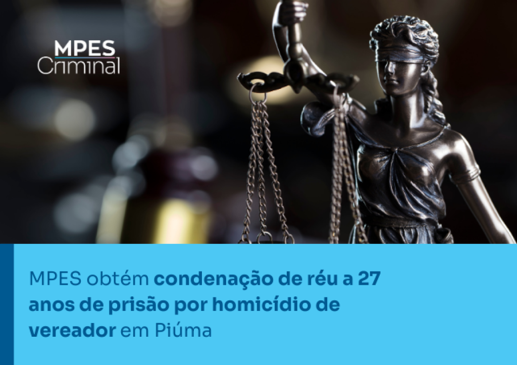 O Ministério Público do Estado do Espírito Santo (MPES), por meio da Promotoria de Justiça de Piúma, obteve a condenação de Jairo Esteves da Silva a 27 anos de prisão pelo homicídio de Jackson Pereira, na época vereador do município. O réu cumprirá a pena em regime inicial fechado.