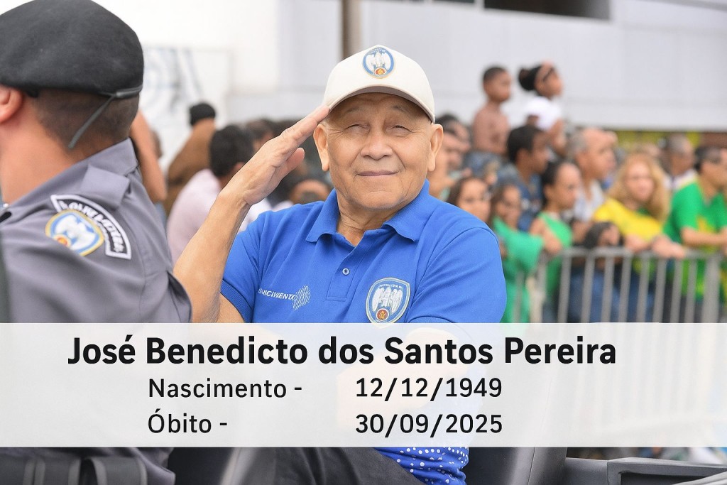 A Polícia Militar do Espírito Santo manifesta profundo pesar pelo falecimento do sargento da reserva remunerada José Benedicto dos Santos Pereira, ocorrido no dia 30 de setembro de 2025, aos 75 anos.