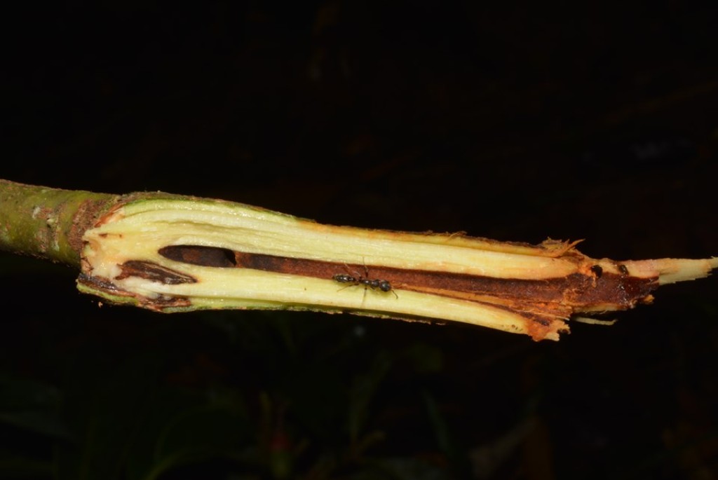 A nova espécie se destaca por sua curiosa interação com as formigas. Durante a coleta de amostras, os pesquisadores observaram que as formigas habitam apenas os ramos onde ficam inseridas as folhas, criando ‘túneis’ para o centro do ramo e pequenas ‘janelas’ para saírem. O nome myrmecophila deriva do grego, significando “amiga das formigas”, refletindo essa relação simbólica.