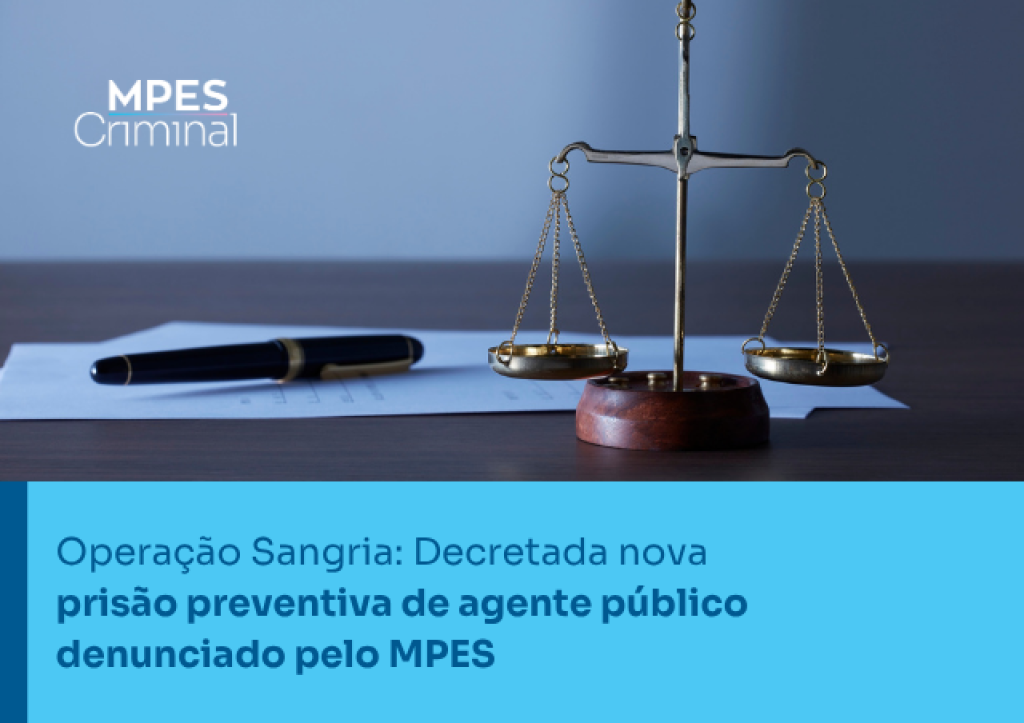 O Ministério Público do Estado do Espírito Santo (MPES), por meio da Promotoria de Justiça de Rio Novo do Sul, obteve novamente, a partir de decisão do Tribunal de Justiça do Espírito Santo (TJES), a decretação da prisão preventiva do servidor público Leandro José Santos Santana, envolvido na Operação Sangria.