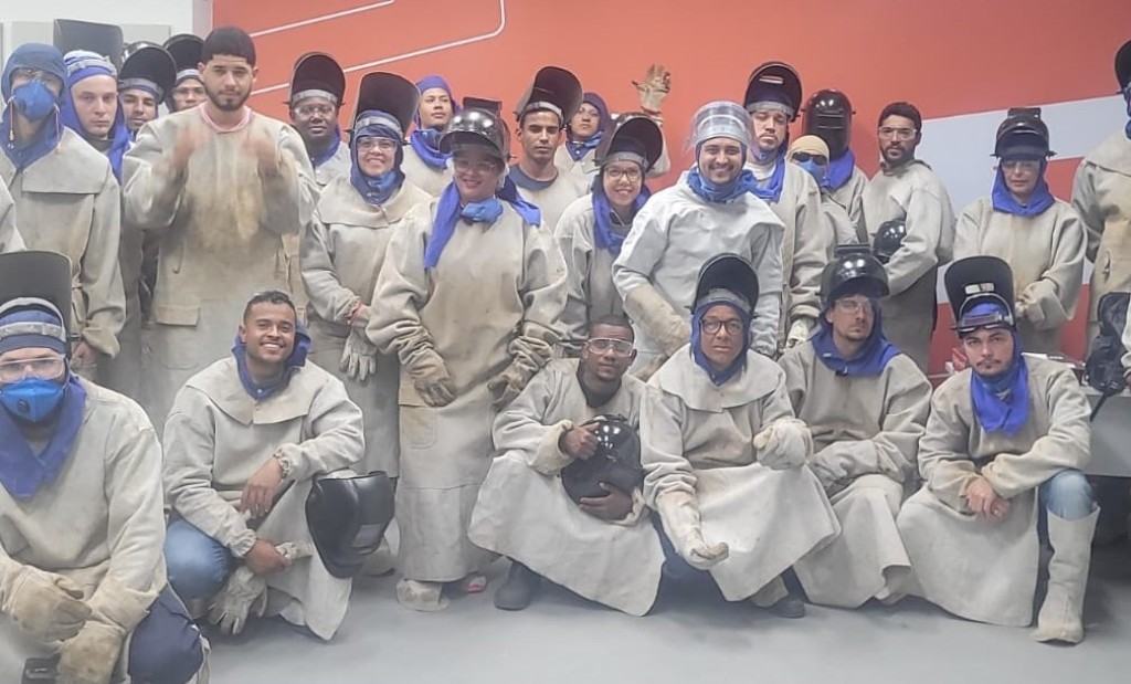 ???? Registro fotográfico: alunos do curso de Soldagem MAG durante visita pedagógica e aulas práticas, em parceria com o SENAI.