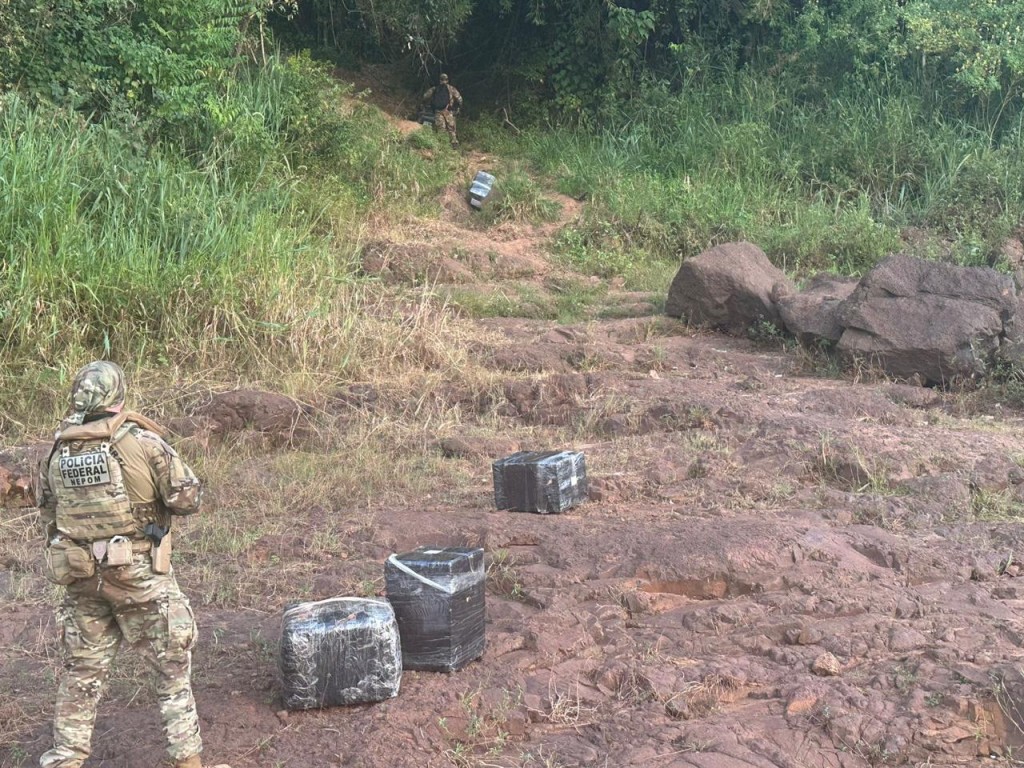 Foz do Iguaçu/PR. Policiais federais apreenderam seis fardos de mercadorias importadas, após um barco atravessar o rio Paraná e descarregar nas margens brasileiras, na noite desta quinta-feira (16/01).