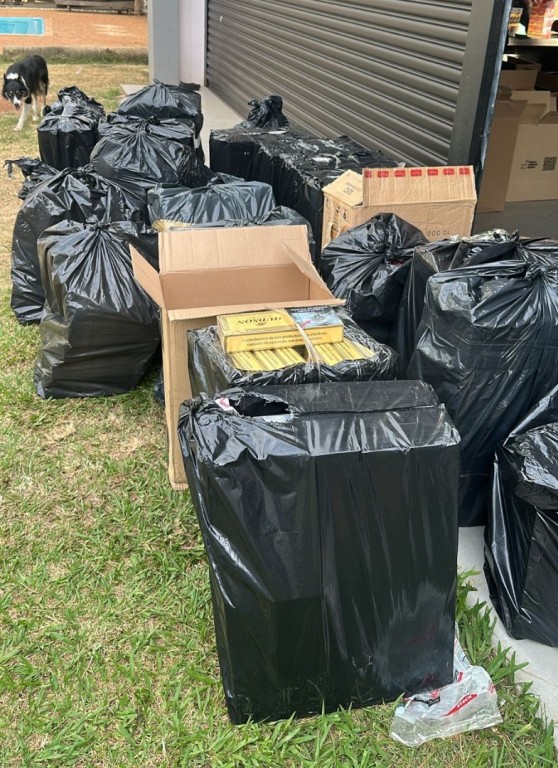 A ação ocorreu em um endereço residencial e um estabelecimento comercial, onde também foram apreendidos isqueiros estrangeiros, valores em dinheiro, cheques e uma caminhonete. As diligências foram iniciadas após policiais federais identificarem a comercialização irregular de cigarros contrabandeados em um box de comércio popular na cidade.