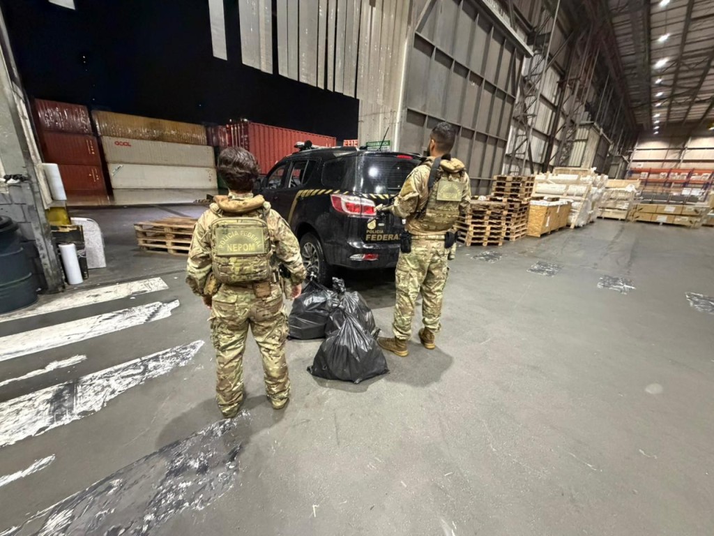 O material ilícito foi localizado no interior de um contêiner com destino ao Porto de Santos/SP.