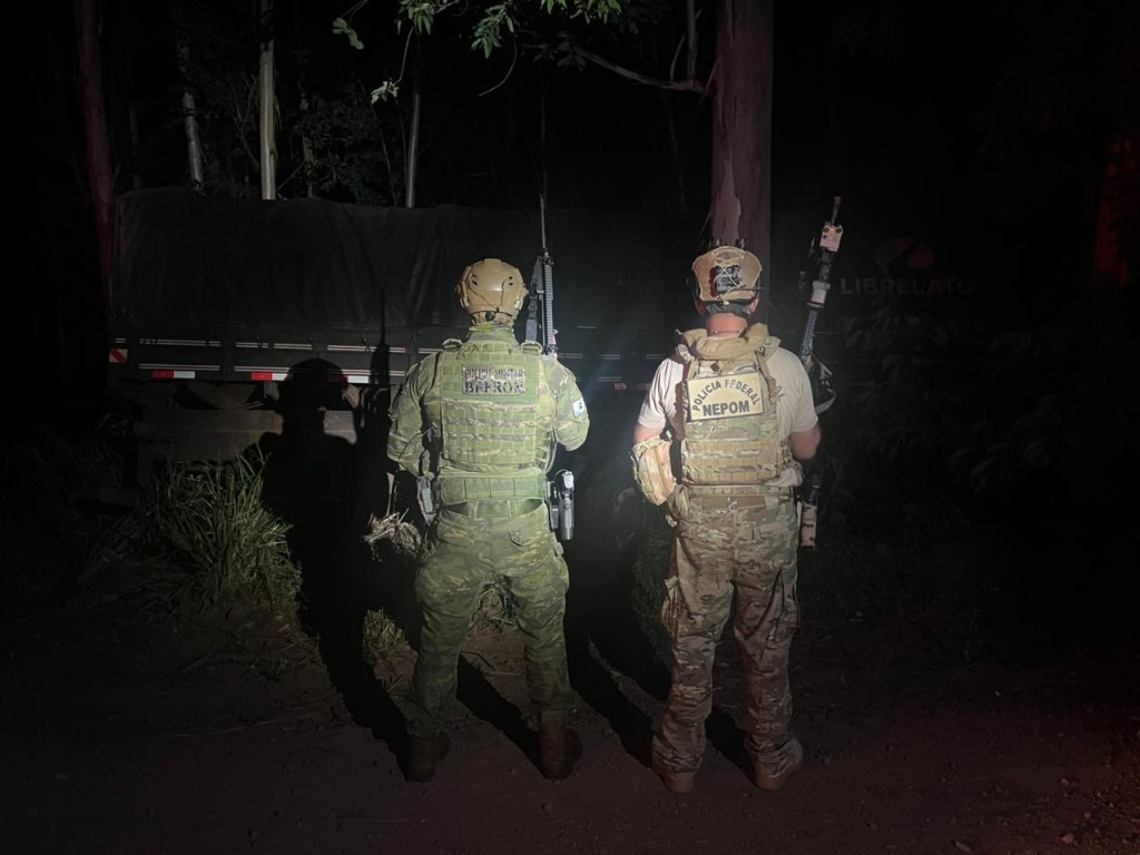 Guaíra/PR. Na noite da última quarta-feira (22/10), a Polícia Federal, em ação integrada com a Polícia Militar do Paraná, por intermédio do Batalhão de Polícia de Fronteira (BPFRON), realizava patrulhamento no município de Mercedes/PR quando avistou um caminhão em atitude suspeita. Ao receber ordem de parada, o condutor não acatou e iniciou fuga, abandonando o veículo na mata e fugindo a pé.