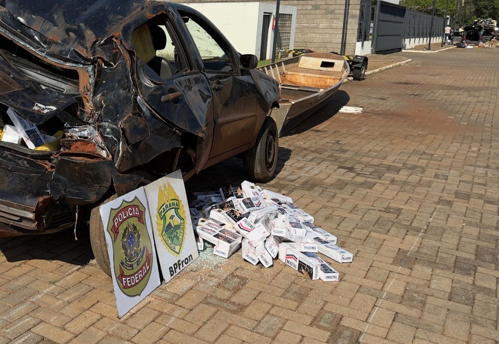 Terra Roxa/PR. A Polícia Federal e a Polícia Militar do Paraná apreenderam, nesta quarta-feira (10/9), um veículo carregado com cigarros contrabandeados na zona rural de Terra Roxa/PR.