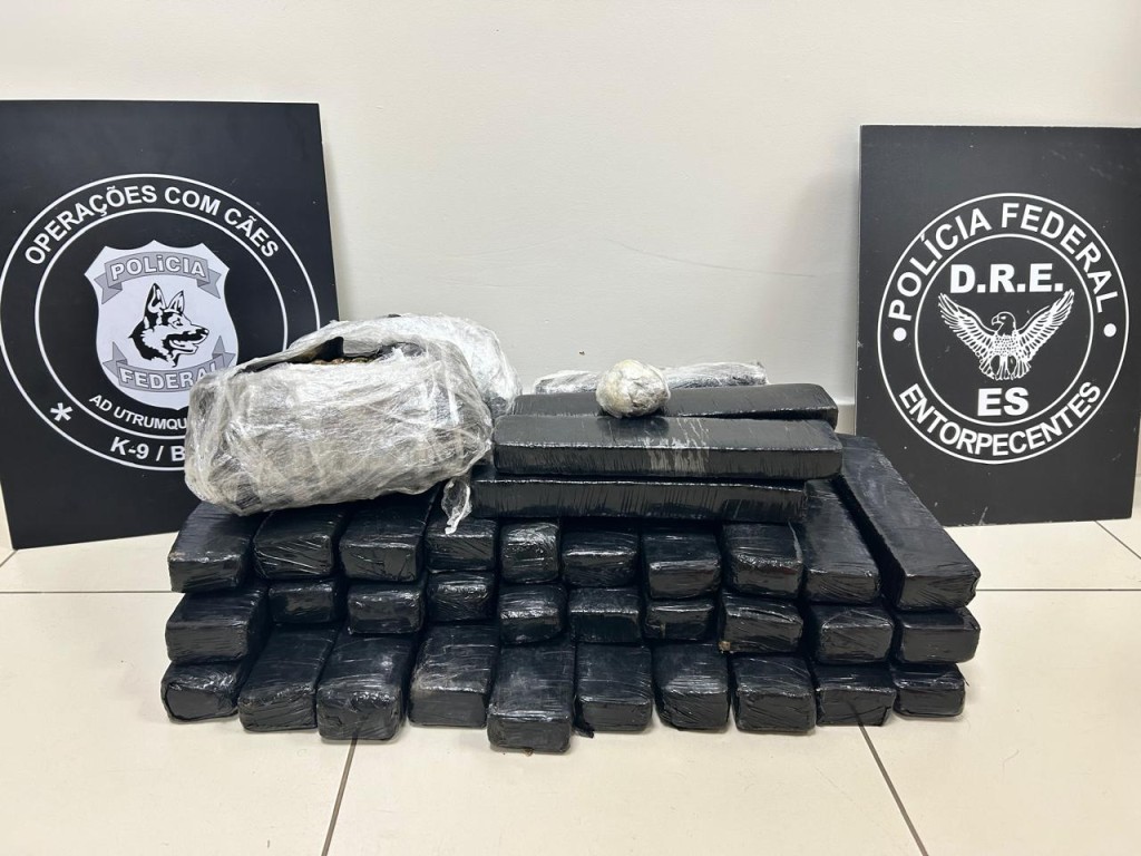 Na ocasião, os cães farejadores de ambas as polícias detectaram drogas nos bagageiros do veículo. Ao abrir as bagagens, na presença da proprietária e do motorista, foram encontrados 37 tabletes de maconha, dois tabletes de Skank e um de haxixe. Diante da situação, a mulher foi presa em flagrante e encaminhada para a Superintendência da Polícia Federal.
