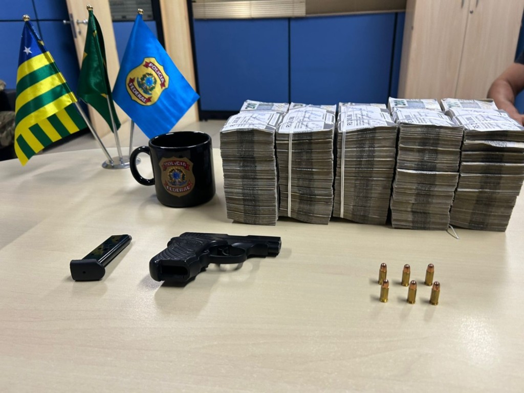 Diante das circunstâncias, o suspeito foi conduzido à Superintendência da Polícia Federal em Goiás para prestar esclarecimentos. Na ocasião, foi lavrado auto de prisão em flagrante pelos crimes de lavagem de capitais e porte ilegal de arma de fogo.